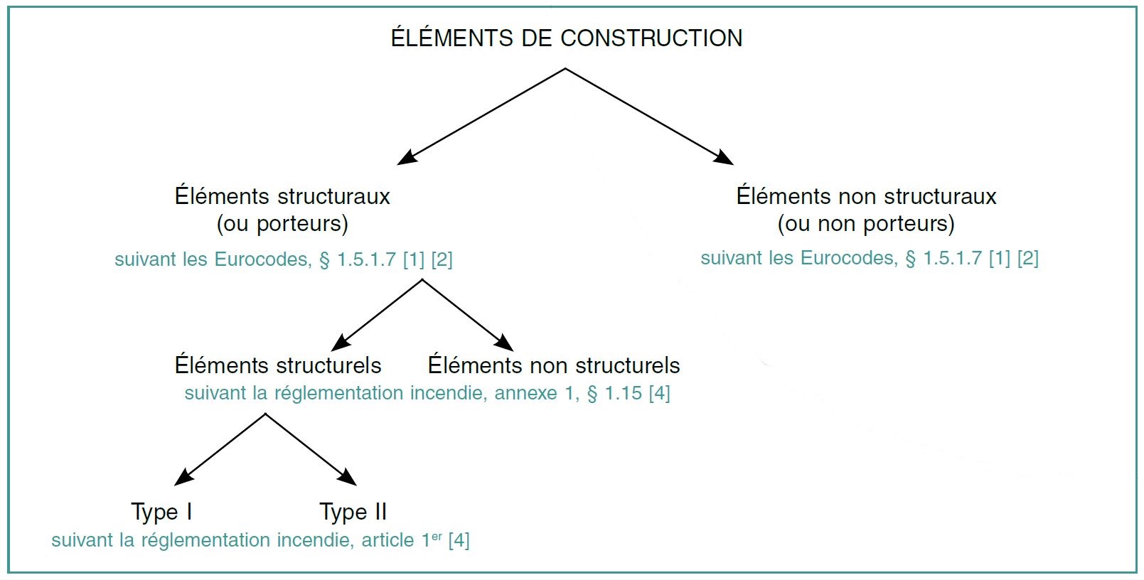 Dans le cadre des bâtiments industriels soumis à l'arrêté royal "normes de prévention de base", une distinction est encore faite parmi les éléments porteurs "structurels" :