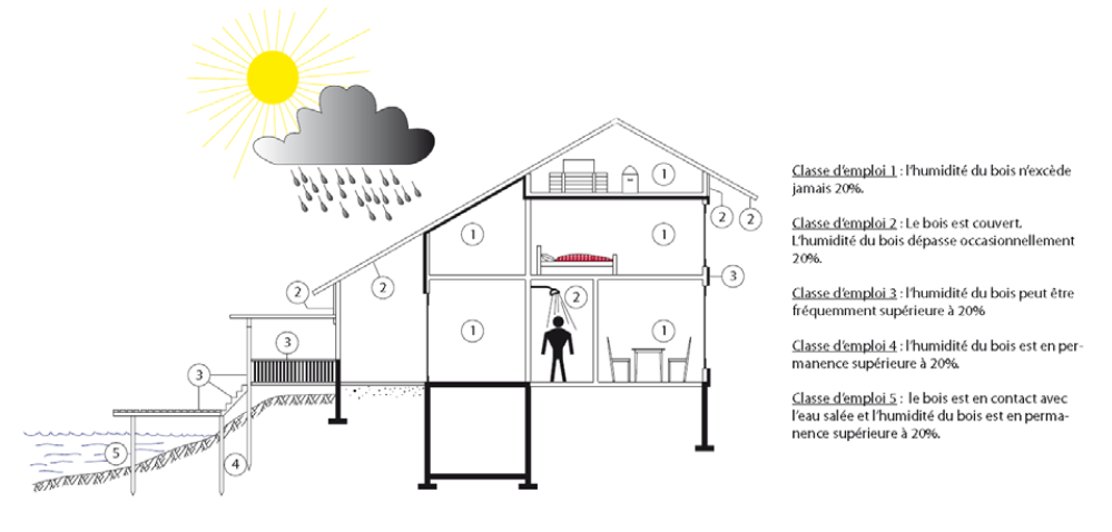 Pour chaque élément de structure en bois ou en matériau à base de bois, une classe d’emploi est déterminée.